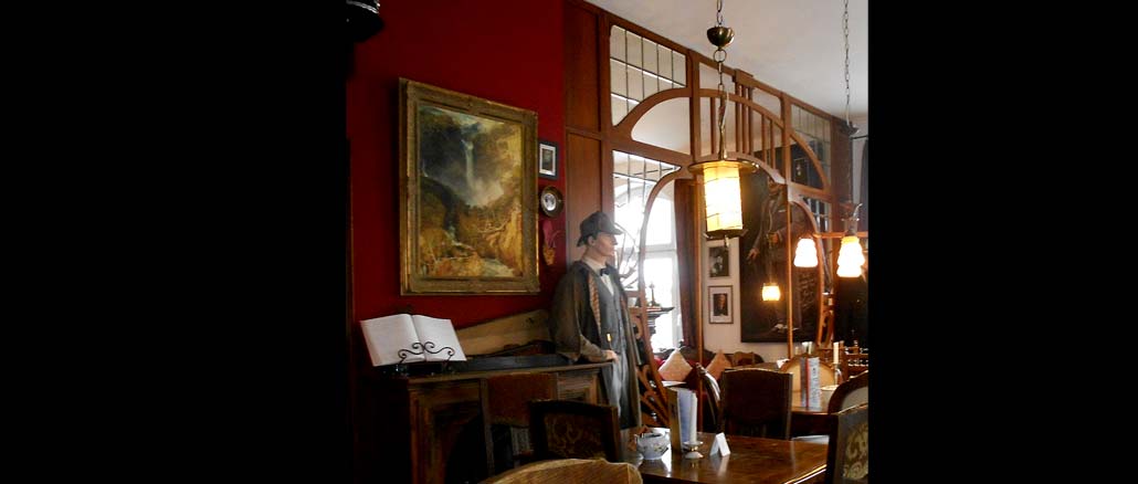 web_sherlock Der Namensgeber des Cafés ist ebenfalls zu Gast. Sherlock Holmes im Café Sherlock im Kriminalhaus Hillesheim